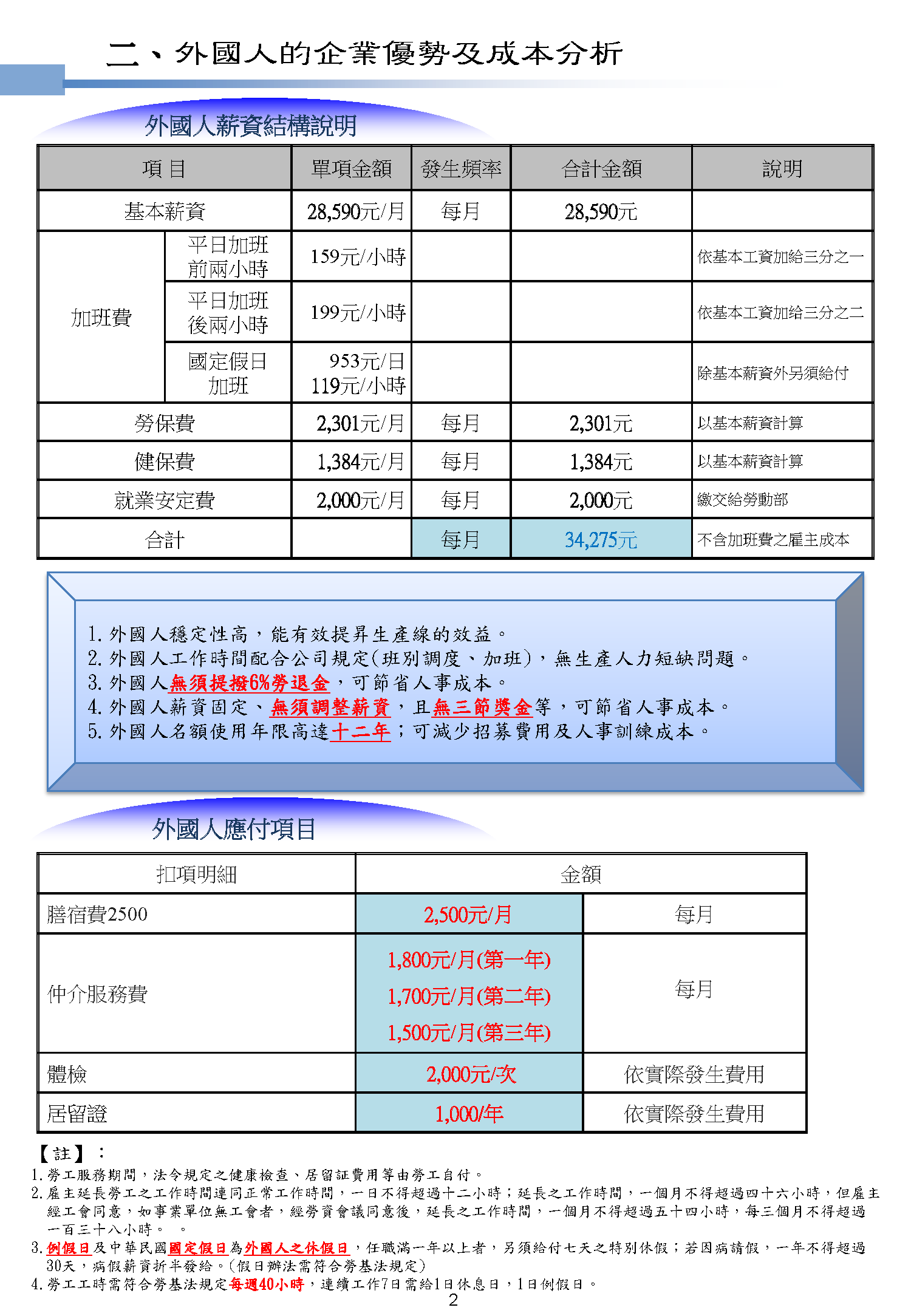 三、外籍勞工的企業優勢及成本分析